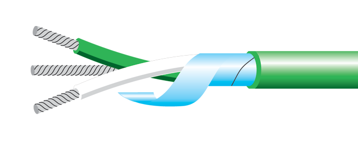 7/0.2mm-es vagy 13/0.2mm-es erű kábeleket kínálunk 25, 50, 100 vagy 200m hosszúságban KX, KCB, TX, JX, NX, NC vagy RCA/SCA hőelem típusból. Mindkét ér hőálló PVC szigetelt. A két, egymásra csavart ér Mylar® alumíniumszalaggal van árnyékolva, külső burkolata hőálló PVC. Az összes ér anyaga (kivéve a kompenzáló hőelemkábeleket) megegyezik a megfelelő hőelem két vezetőjével, valamint megfelel az IEC 60584-1: Class 2: 2013-nak 105°C-ig. A szigetelések IEC 60584-3:2007 szerinti színkóddal vannak ellátva (lásd. lent).